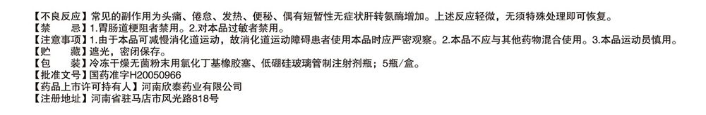 药品剂型: 注射剂