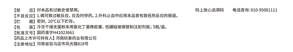 注意事项: 1.本品严禁注射。如误入血管可导致血栓形成、局部坏死危及生命。2.本品必须直接与创面接触,才能起止血作用。3.本品应新鲜配制使用。